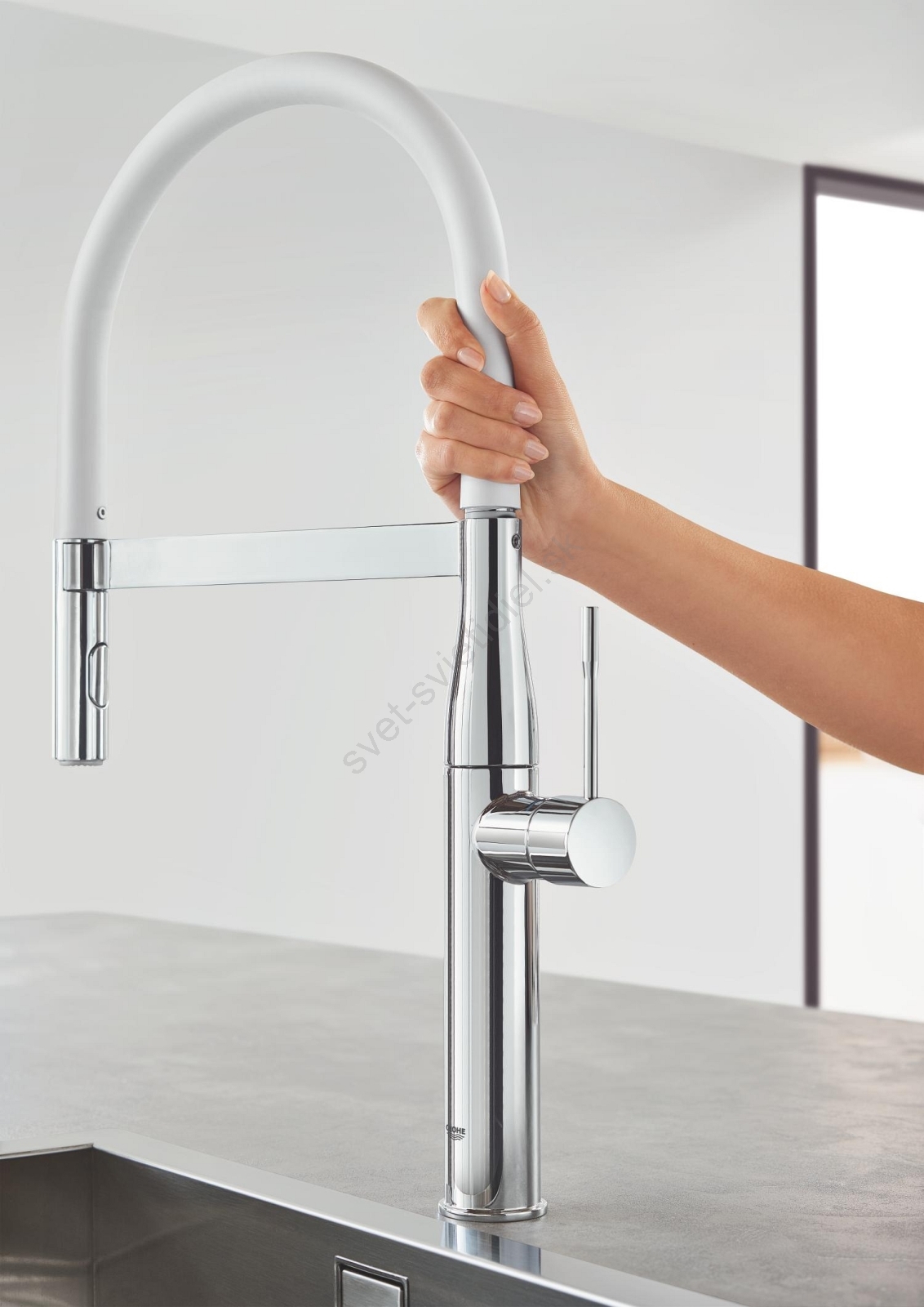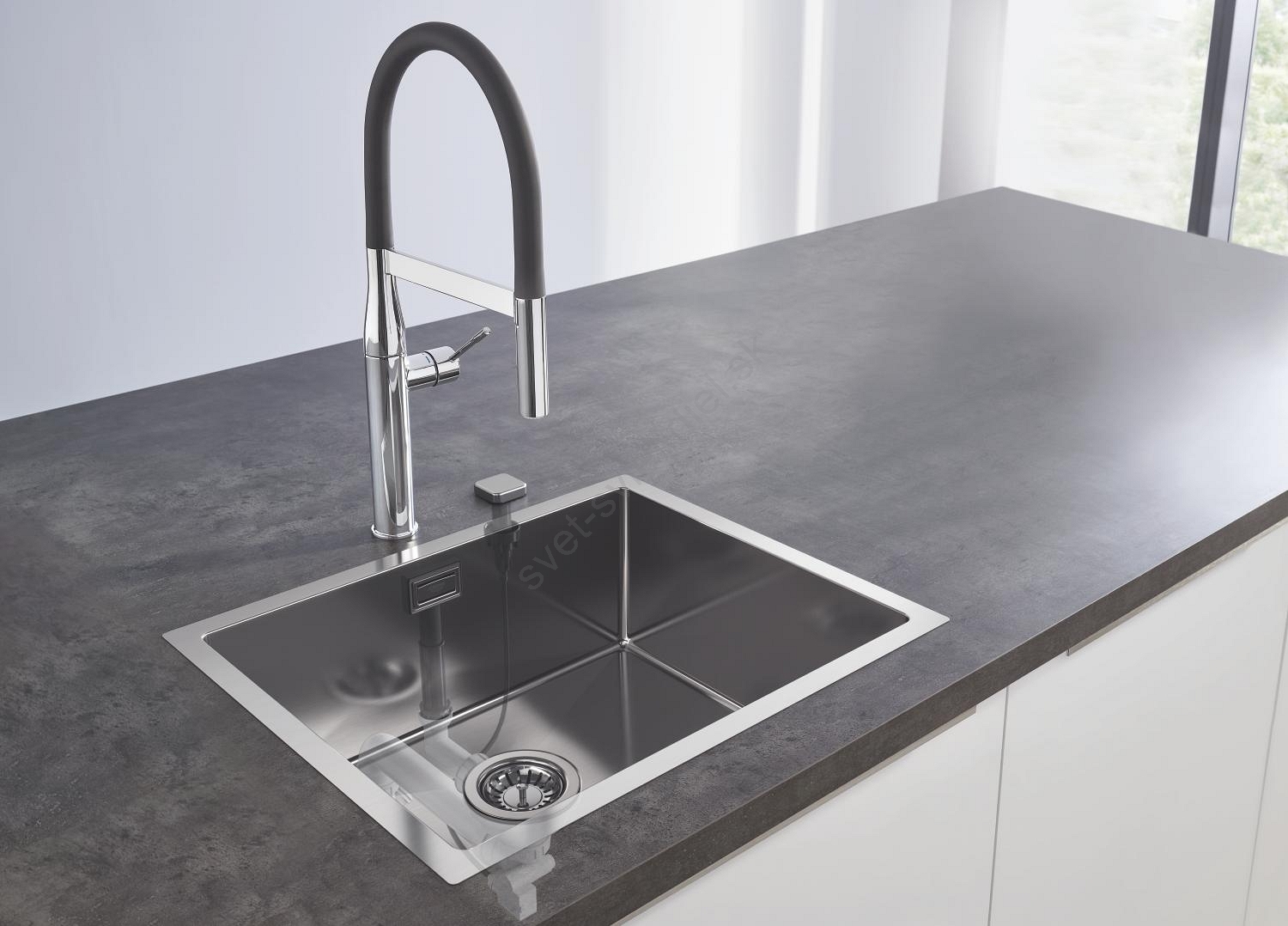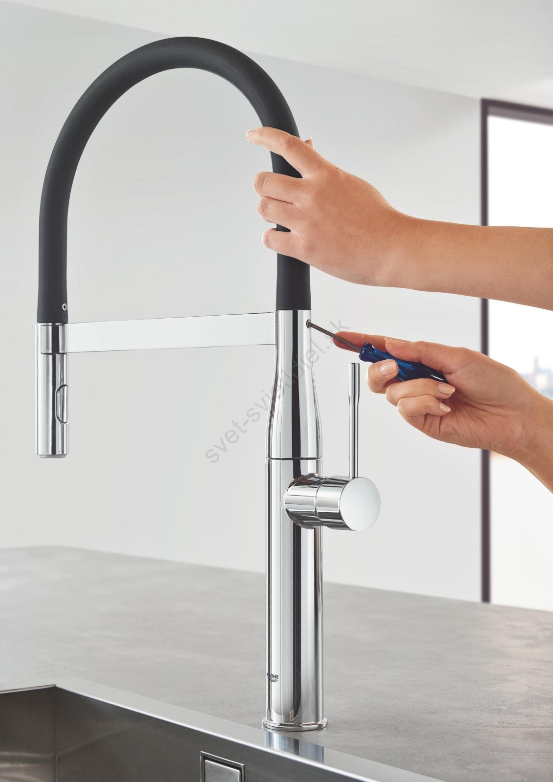 • Profesionálna sprcha s flexibilnou, hygienickou kuchynskou hadicou GROHFlexx zo santoprénu.