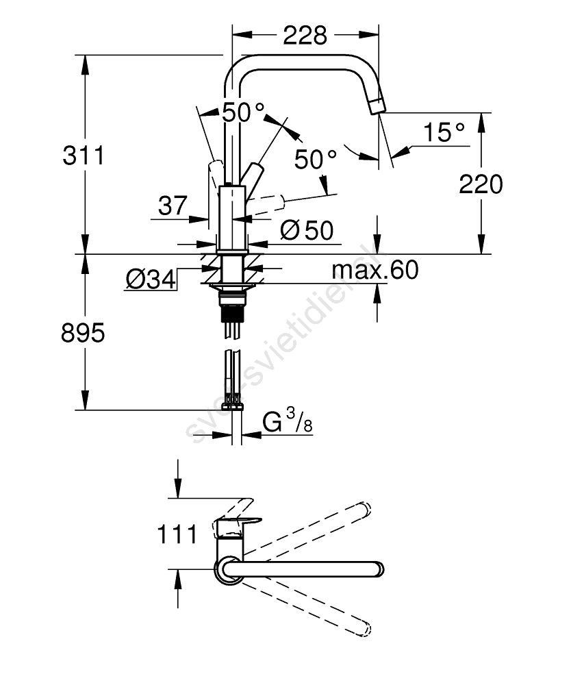 • Výška batérie 311 mm a dĺžka výtoku 228 mm pre pohodlné používanie.