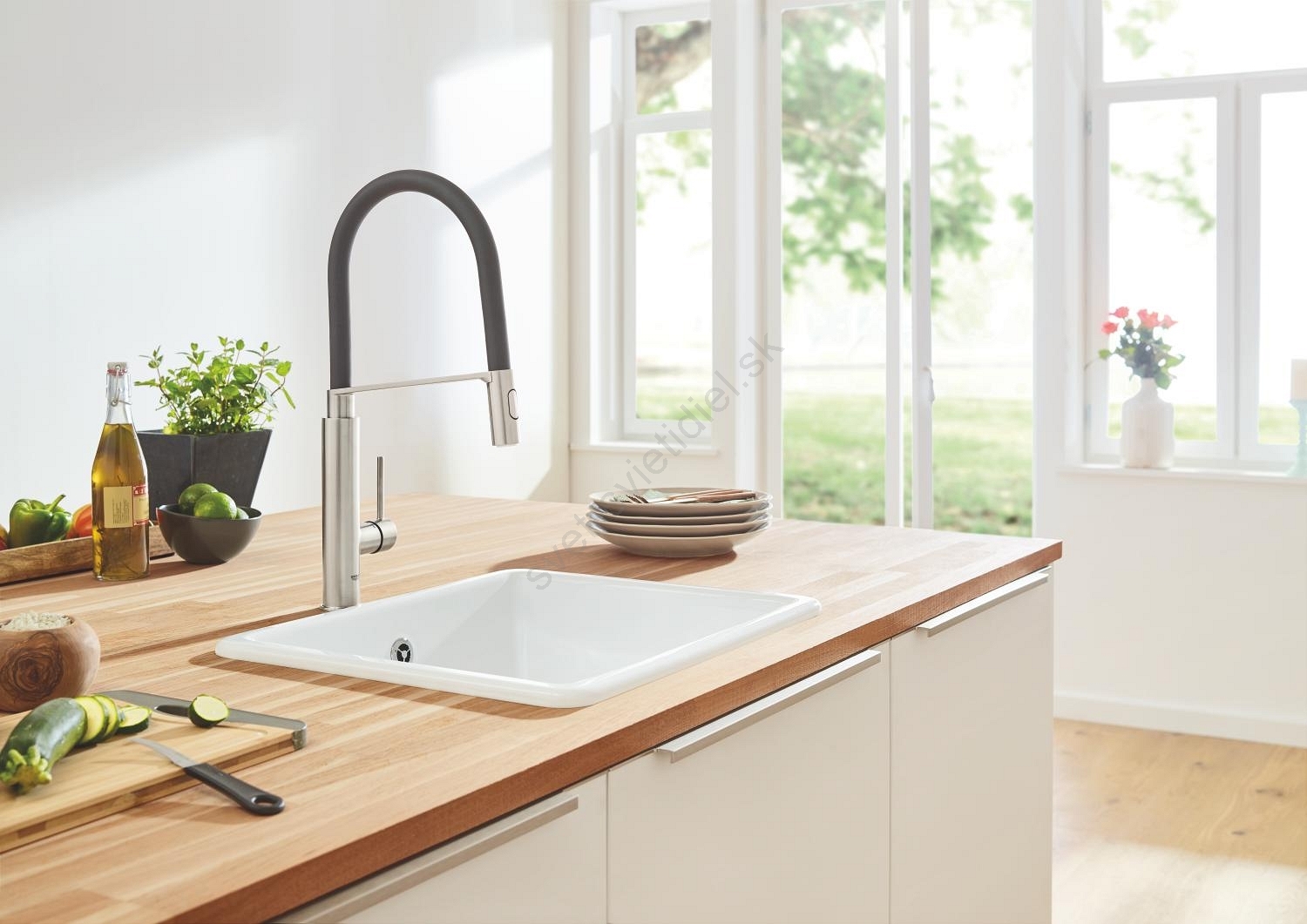 • Profesionálna sprcha s flexibilnou, hygienickou kuchynskou hadicou GROHFlexx zo santoprénu.