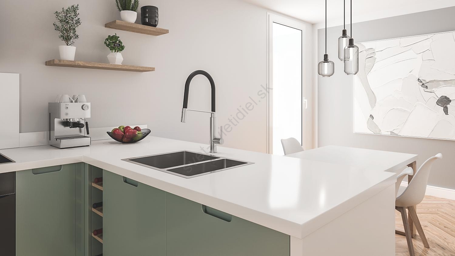 • Nerezový drez GROHE K700U s 1,5-komorovým usporiadaním pre maximálnu funkčnosť.
