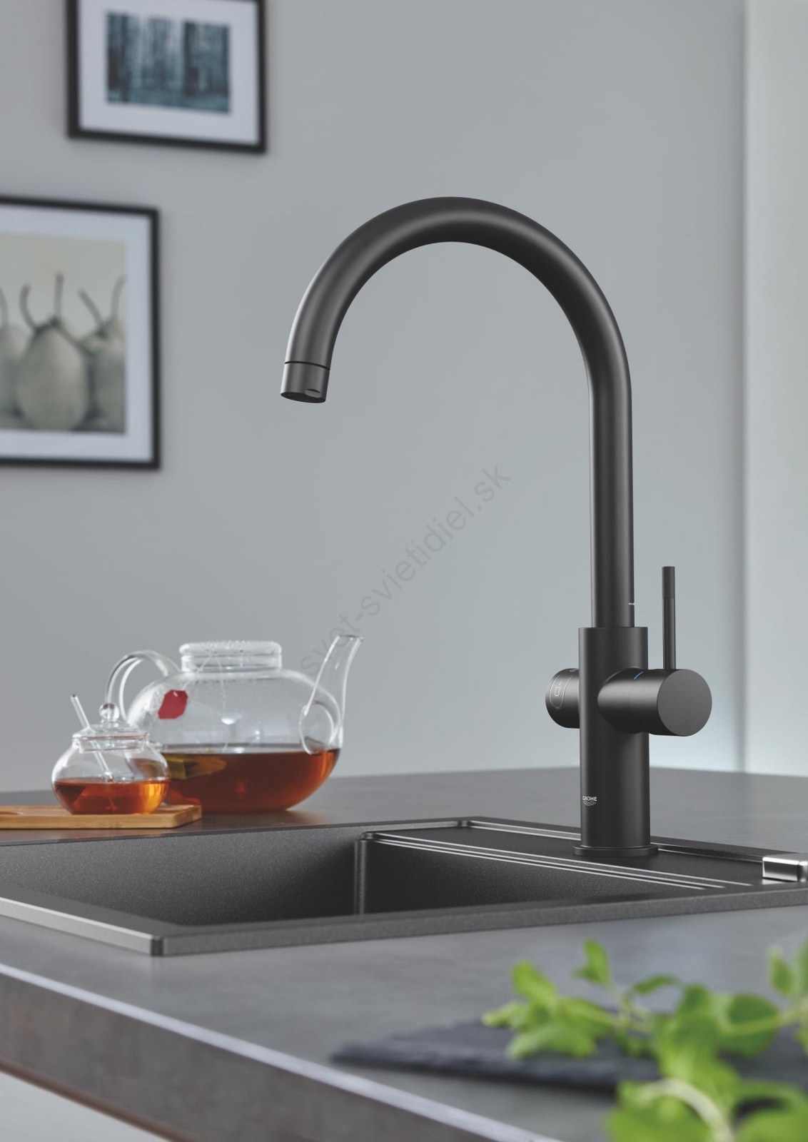 • Kompozitný drez GROHE K700 v elegantnom prevedení Granite Black.