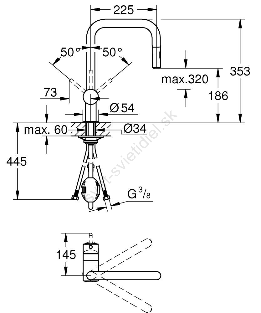 • Flexibilné pripojovacie hadice pre jednoduchú inštaláciu a prispôsobenie rôznym kuchynským konfiguráciám.