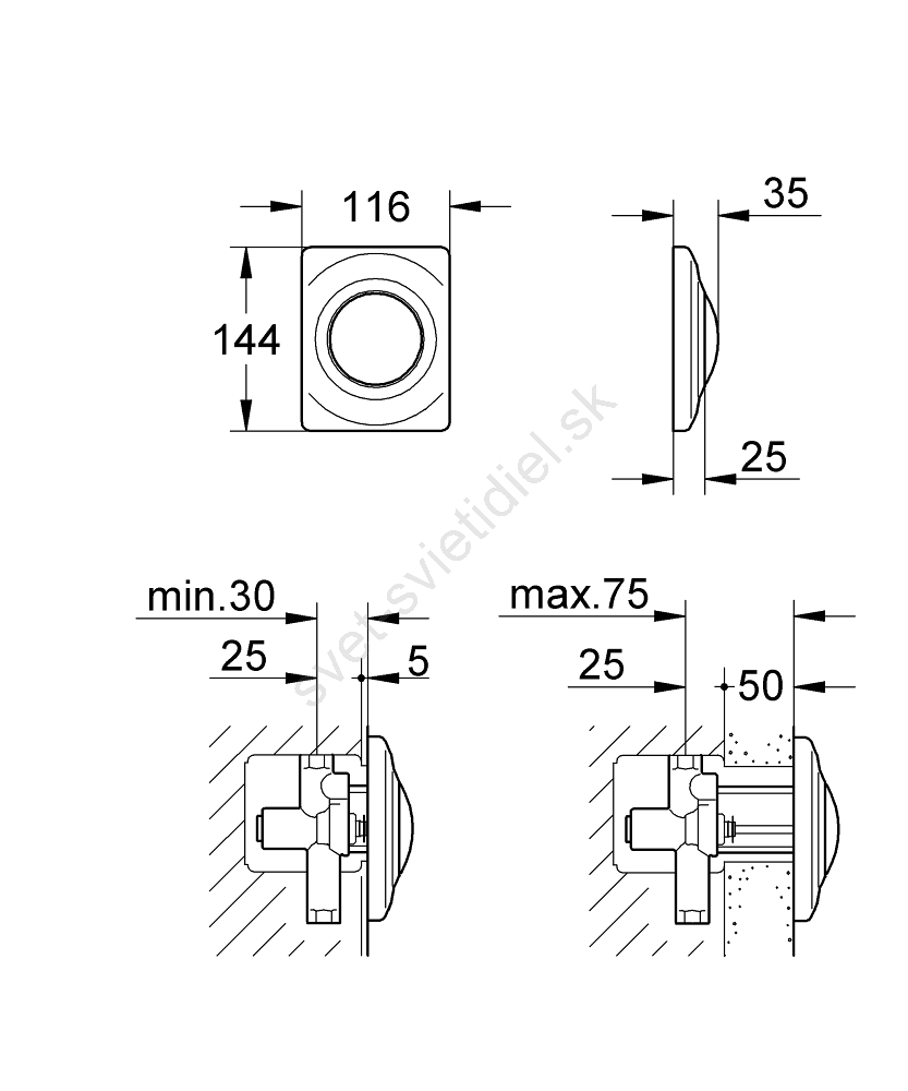 • Kompaktné rozmery 116 × 144 mm pre jednoduchú inštaláciu.