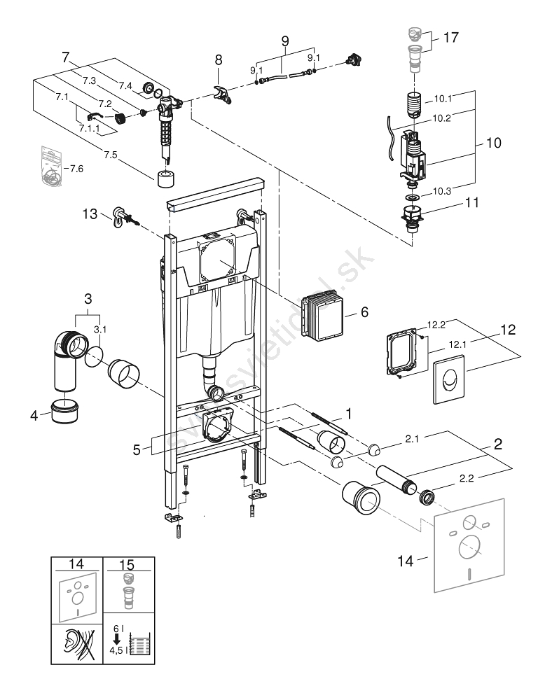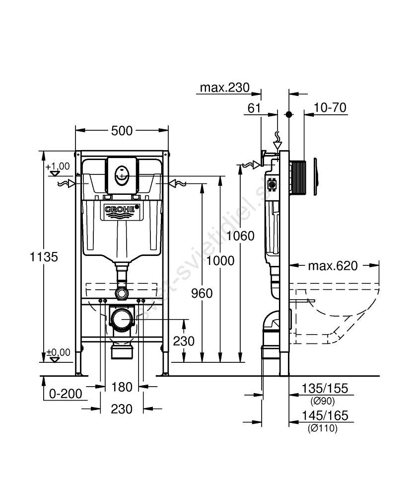 • Inštalačný systém GROHE Rapid SL pre závesné WC s výškou 1,13 m.