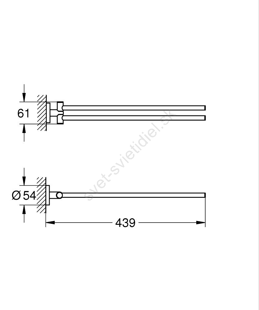 • Celková dĺžka 439 mm poskytuje dostatočný priestor na zavesenie uterákov.