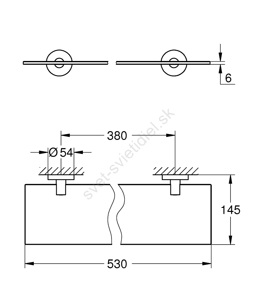 • Celková dĺžka 530 mm s funkčnou dĺžkou 380 mm poskytuje dostatok priestoru pre vaše kúpeľňové potreby.