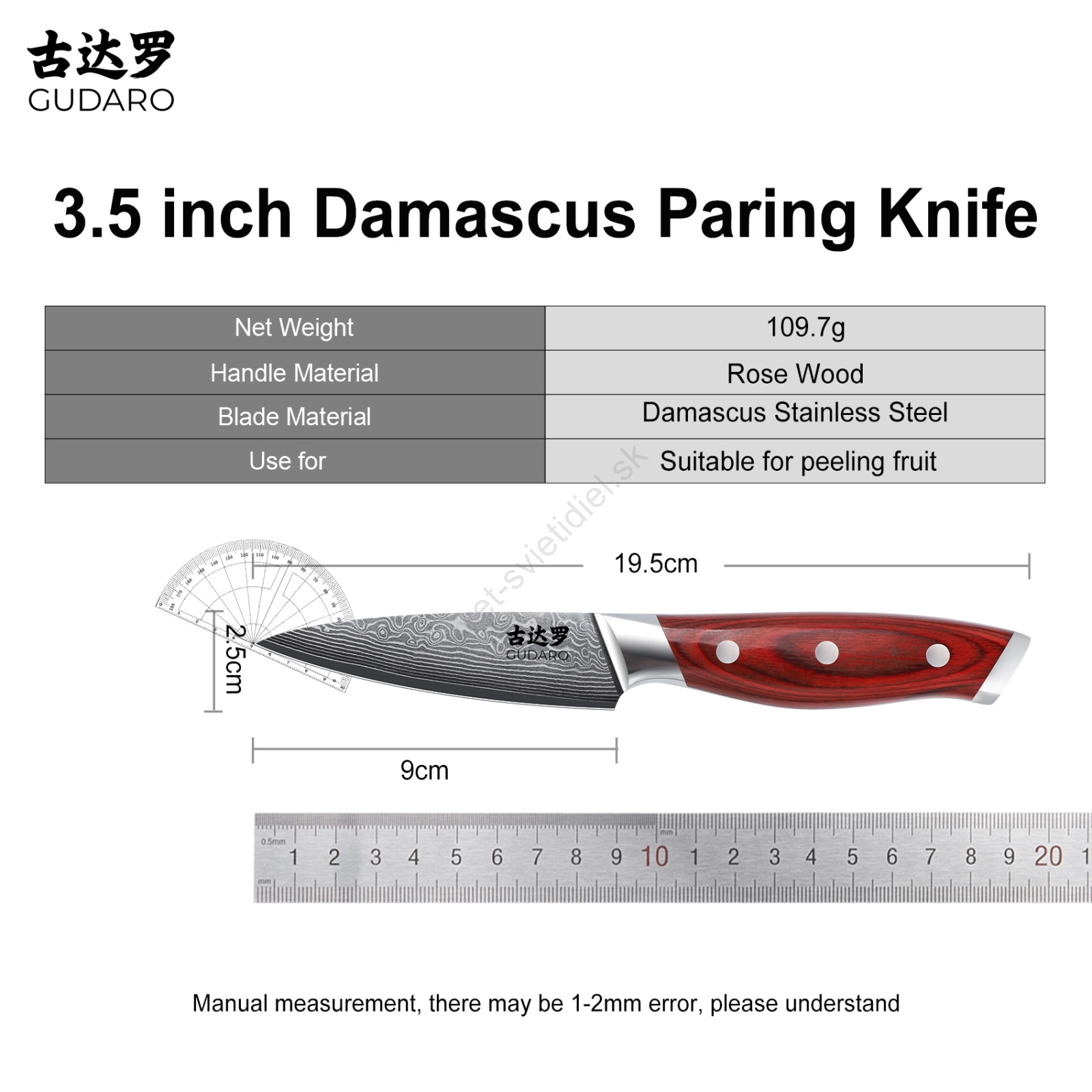 Gudaro - Damaškový kuchynský nôž KENSHO 3,5", 67 vrstiev ocele, dĺžka 9,5 cm