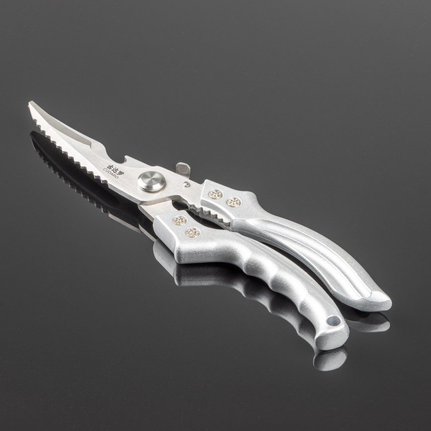 • Nožnice na hydinu vyrobené z vysoko kvalitnej nerezovej ocele 3Cr13 v klasickom striebornom prevedení.