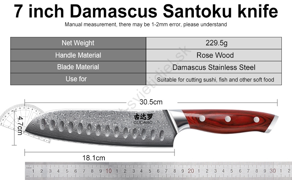 • Kuchynský nôž Santoku 7" (hrúbka 2,5 mm).