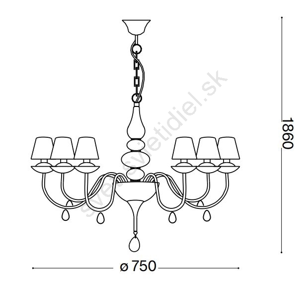 Ideal Lux - Luster na reťazi BLANCHE 6xE14/4W/230V pr. 75 cm čierna charakterizuje pekný dizajn a funkčné prevedenie.  Do svietidla je určená žiarovka s päticou E14. Tu si môžete kúpiť ďalšie žiarovky za výhodnú cenu. Získate tak zaujímavý doplnok do svojho domova.