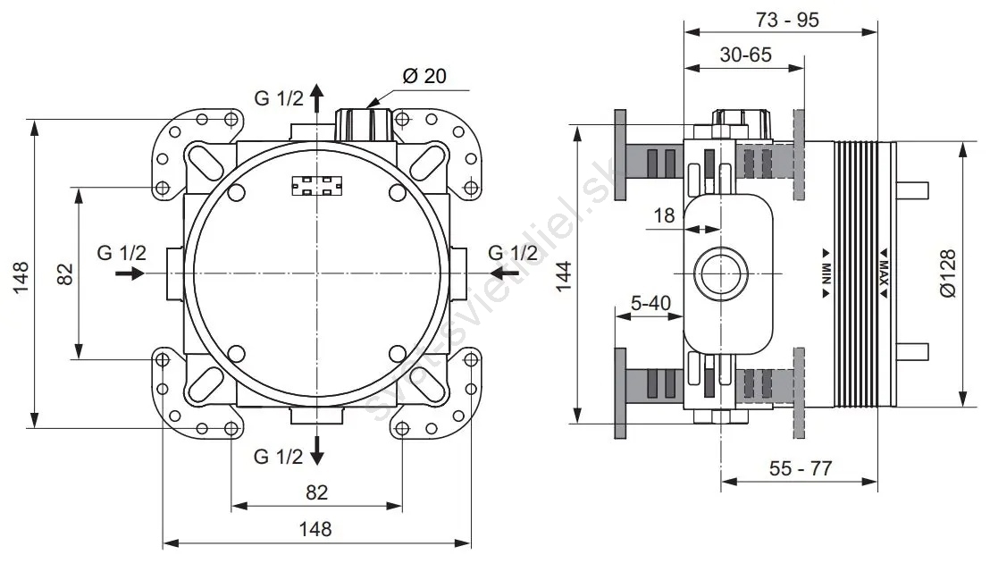 • Podomietkový modul Ideal Standard EASY-Box je určený na predmontáž pákových vaňových, sprchových a termostatických batérií.