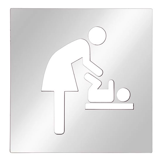 • Ikona z nehrdzavejúcej ocele označujúca prebaľovaciu miestnosť.