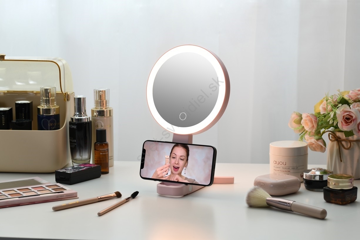 • Stojan je otočný a pevne drží v akomkoľvek uhle na oboch stranách, čo zaručuje maximálnu flexibilitu pri líčení aj pri detailnej starostlivosti o pleť.