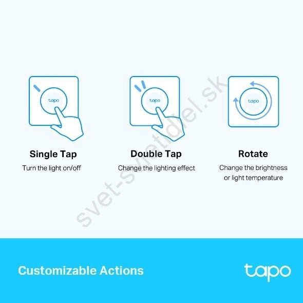 • Podporuje rôzne akcie tlačidla: jedno ťuknutie, dvojité ťuknutie a otáčanie na stmievanie alebo zmenu svetelného efektu.