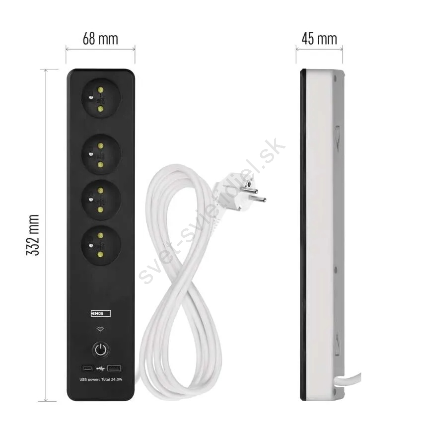 • 2 metre dlhý predlžovací kábel so 4 zásuvkami a portami USB-A a rýchlonabíjacím USB-C premení bežné zariadenie na inteligentné, ktoré môžete ovládať aj na diaľku.
