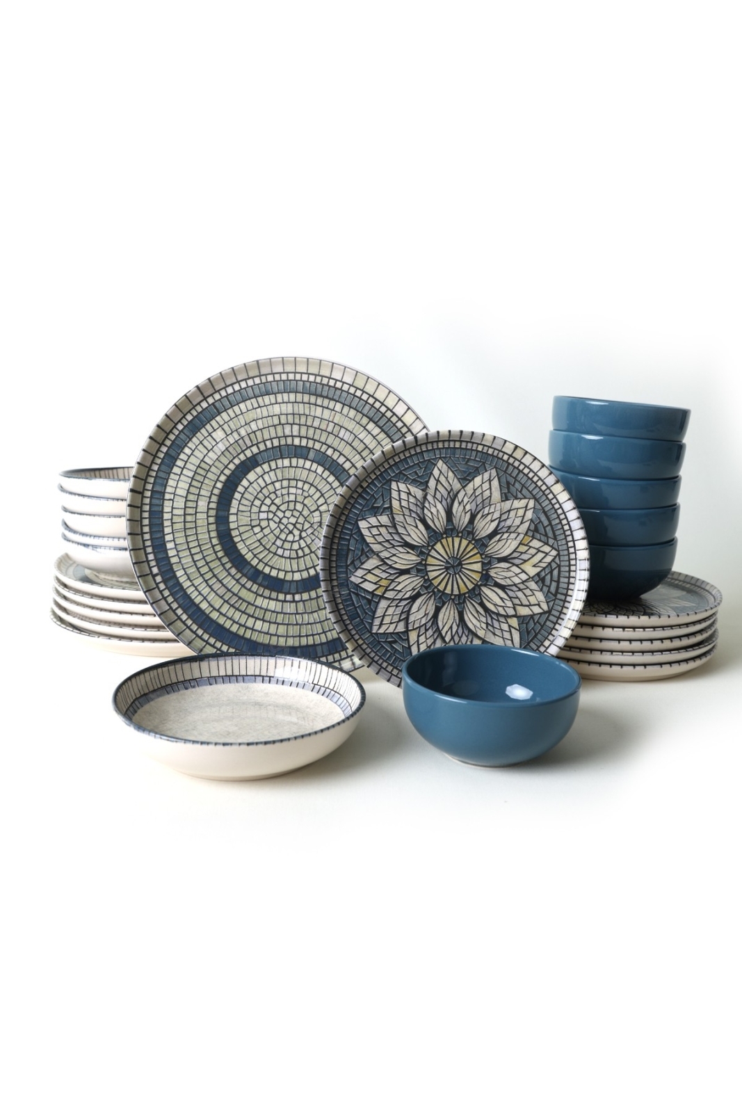 Jedálenská súprava 24 ks, modrá/krémová, z kameniny