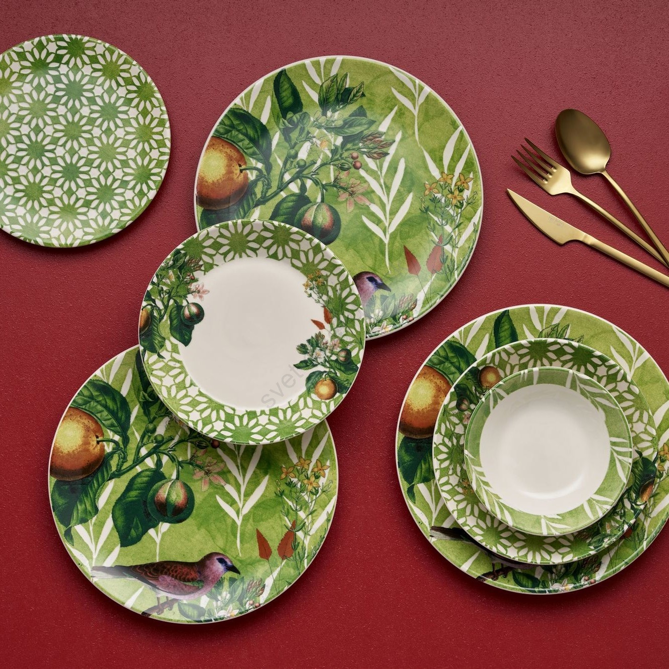 • Porcelánová jedálenská súprava 24 ks, biela/zelená