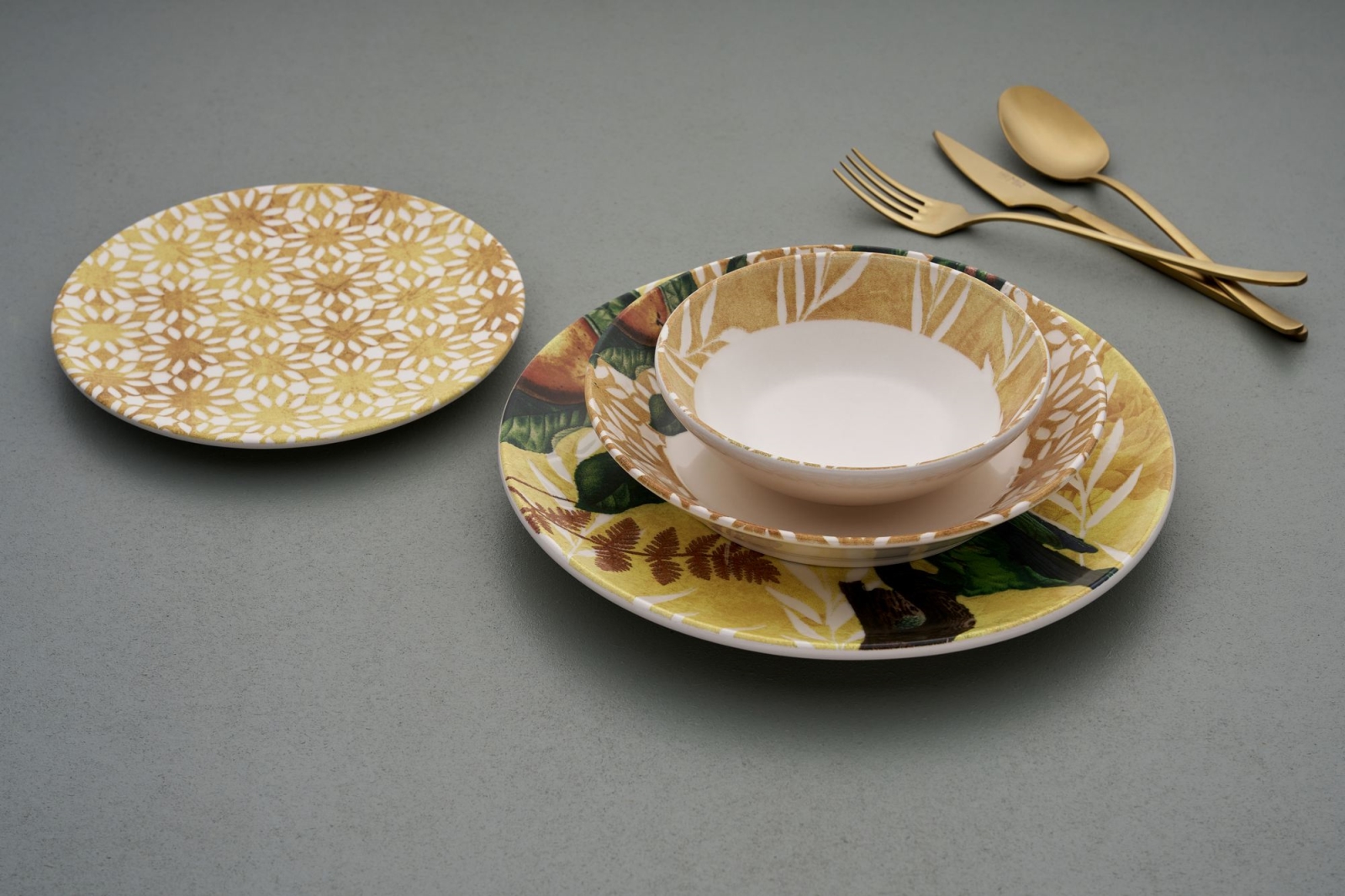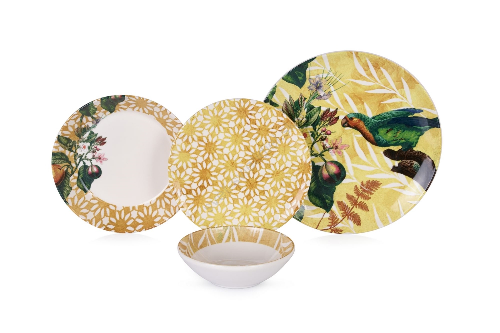 Jedálenská súprava 24 ks žltá/zelená/biela/keramika