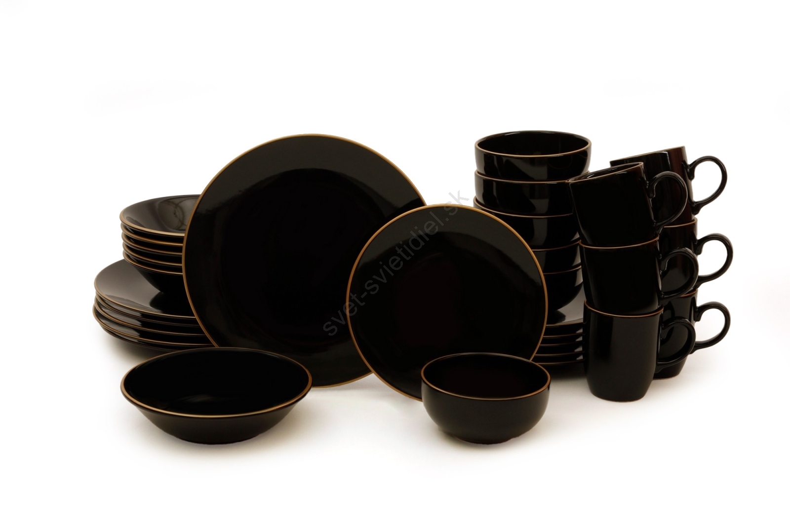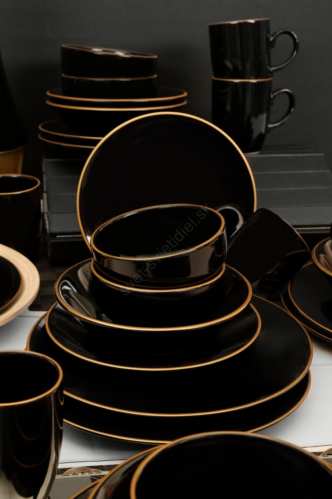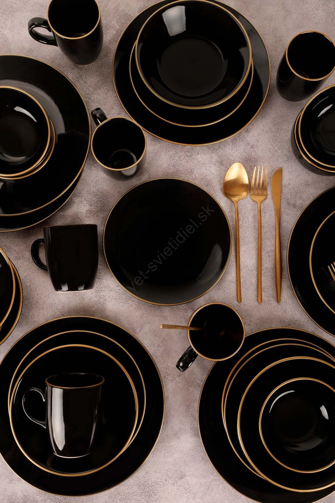 Jedálenská súprava 30 ks čierna/zlatá/kamenina