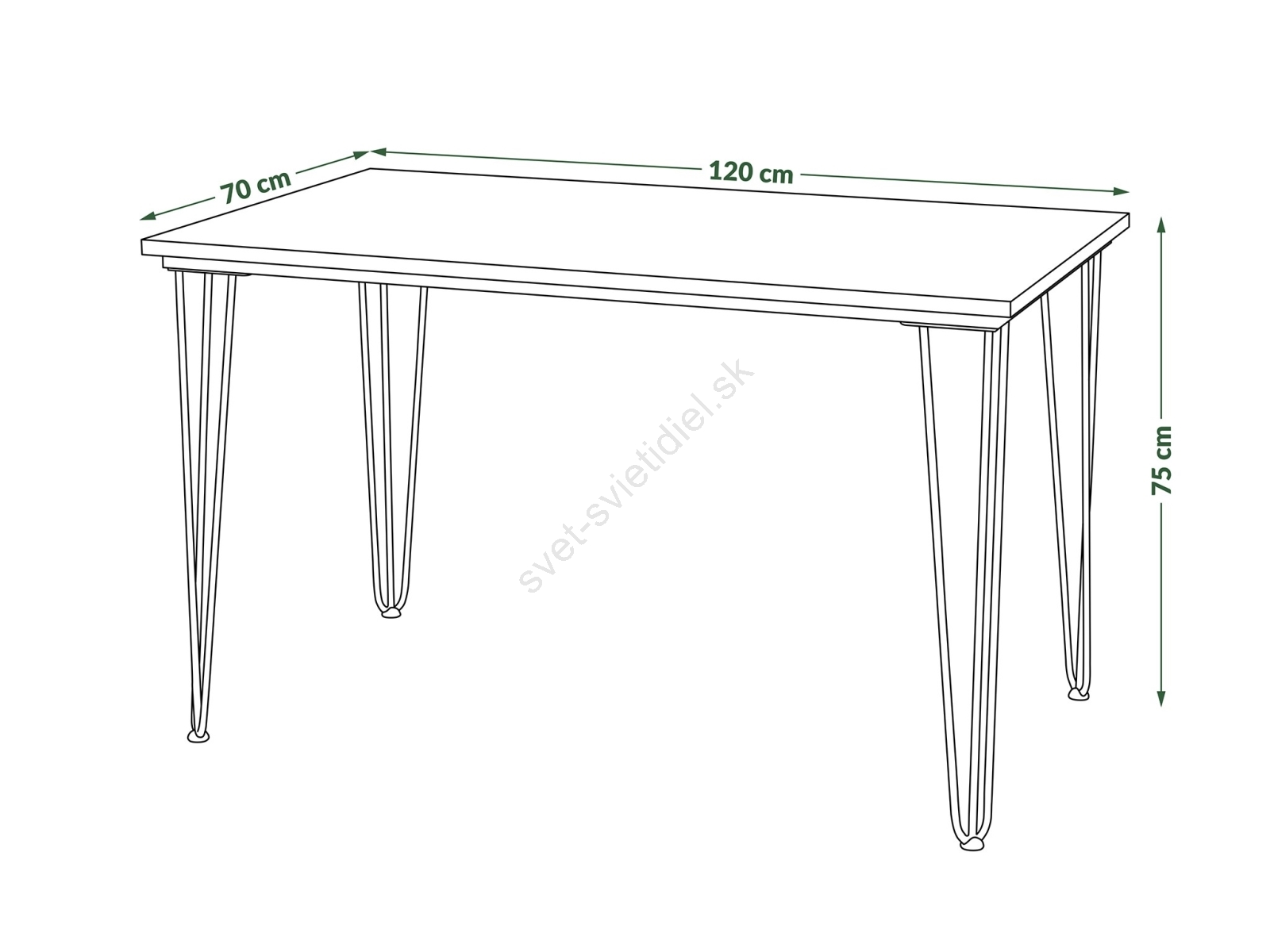 • Stolová doska s rozmermi 120x70 cm poskytuje dostatok miesta pre pohodlné stolovanie alebo prácu.