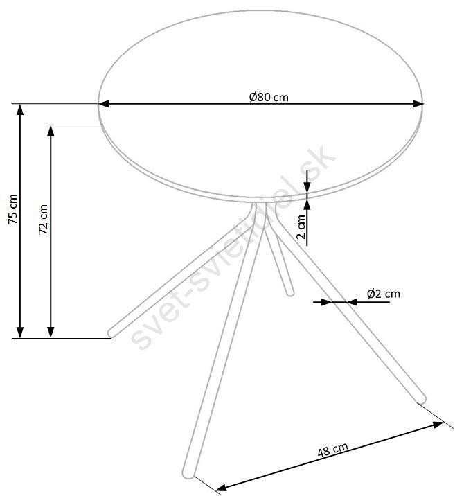 • Doska s priemerom 80 cm poskytuje dostatok priestoru pre pohodlné stolovanie alebo prácu.