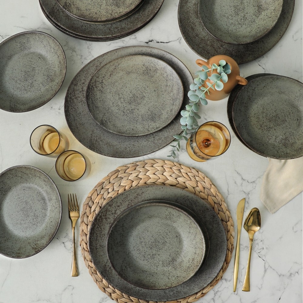 Jedálna súprava 18 ks antracit/zelená/kamenina