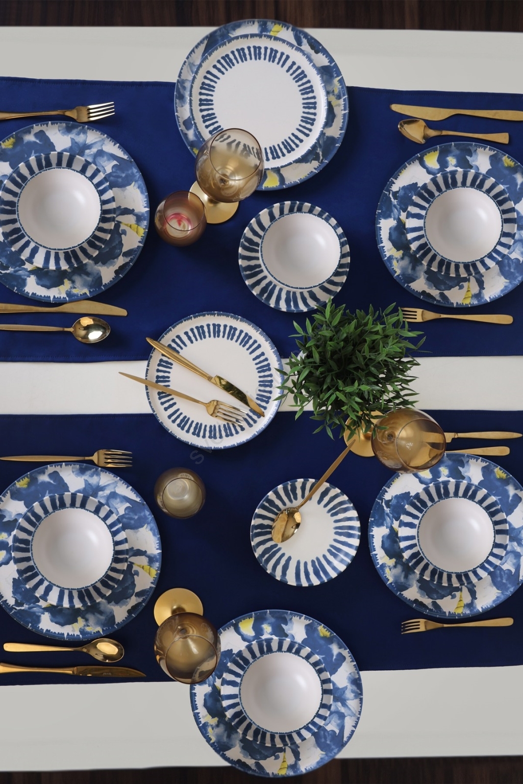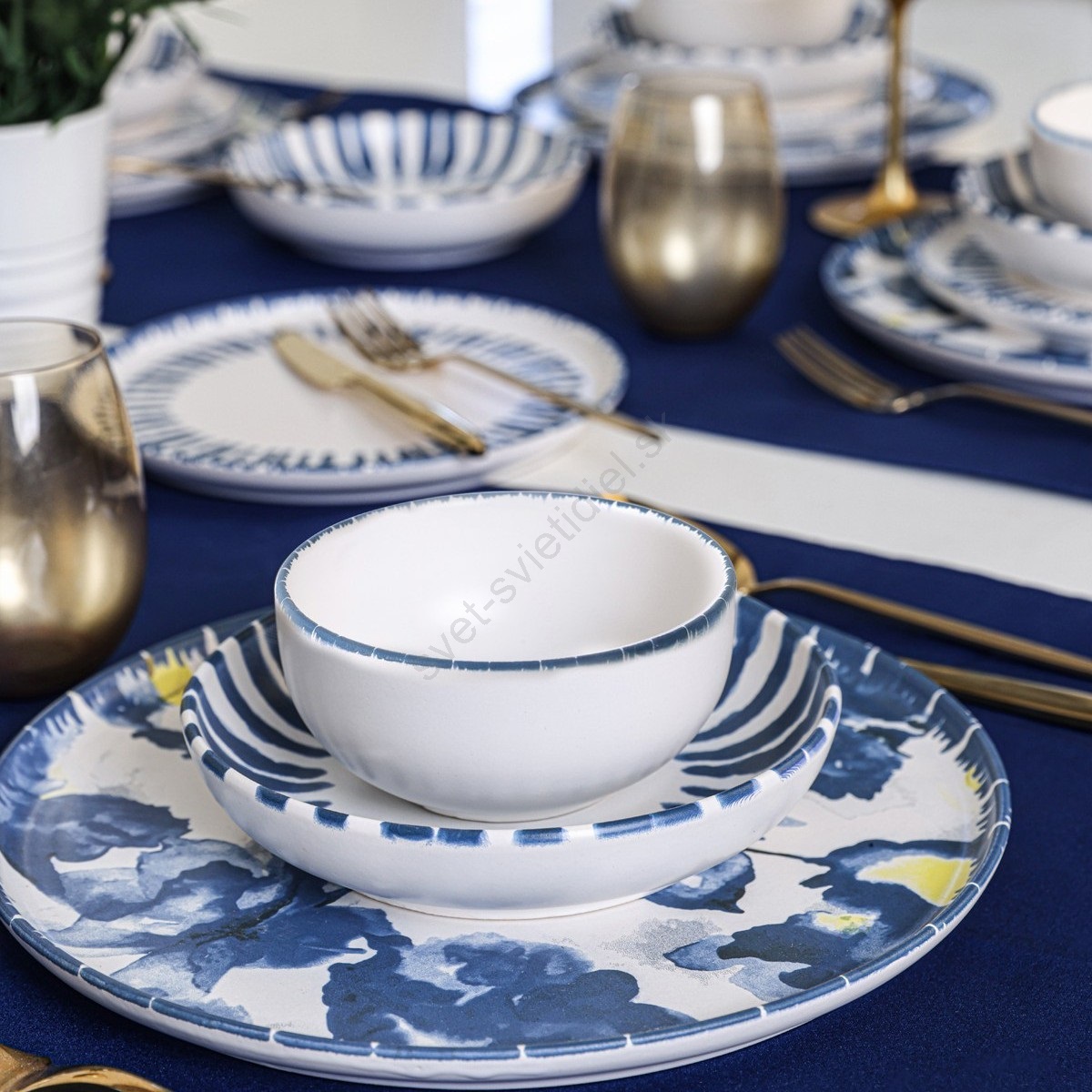 Jedálna súprava 24 ks, bielo-modrá, z kameniny