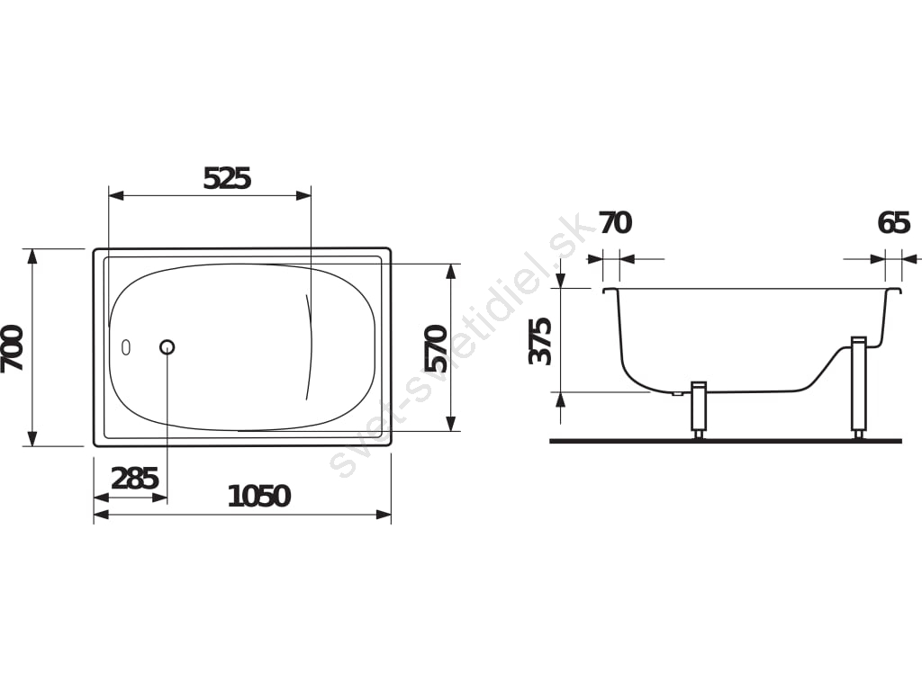 JIKA H2340000000001 - Sedacia vaňa RIGA 105x70 oceľ/biela