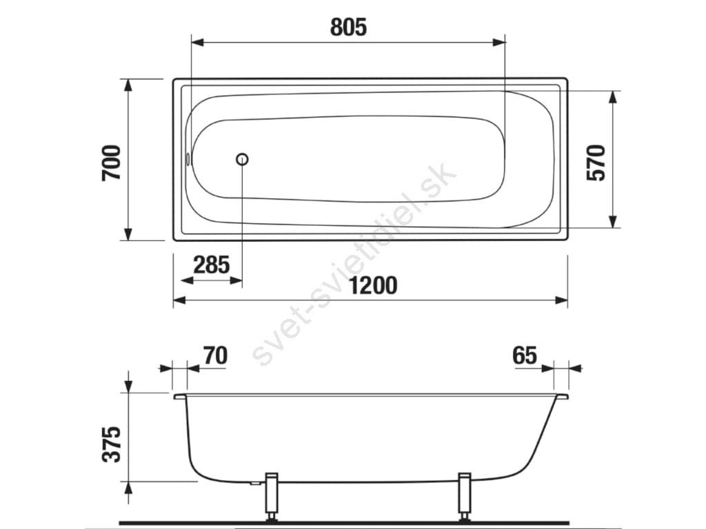 • Klasický obdĺžnikový tvar s rozmermi: 1200 × 700 × 375 mm.