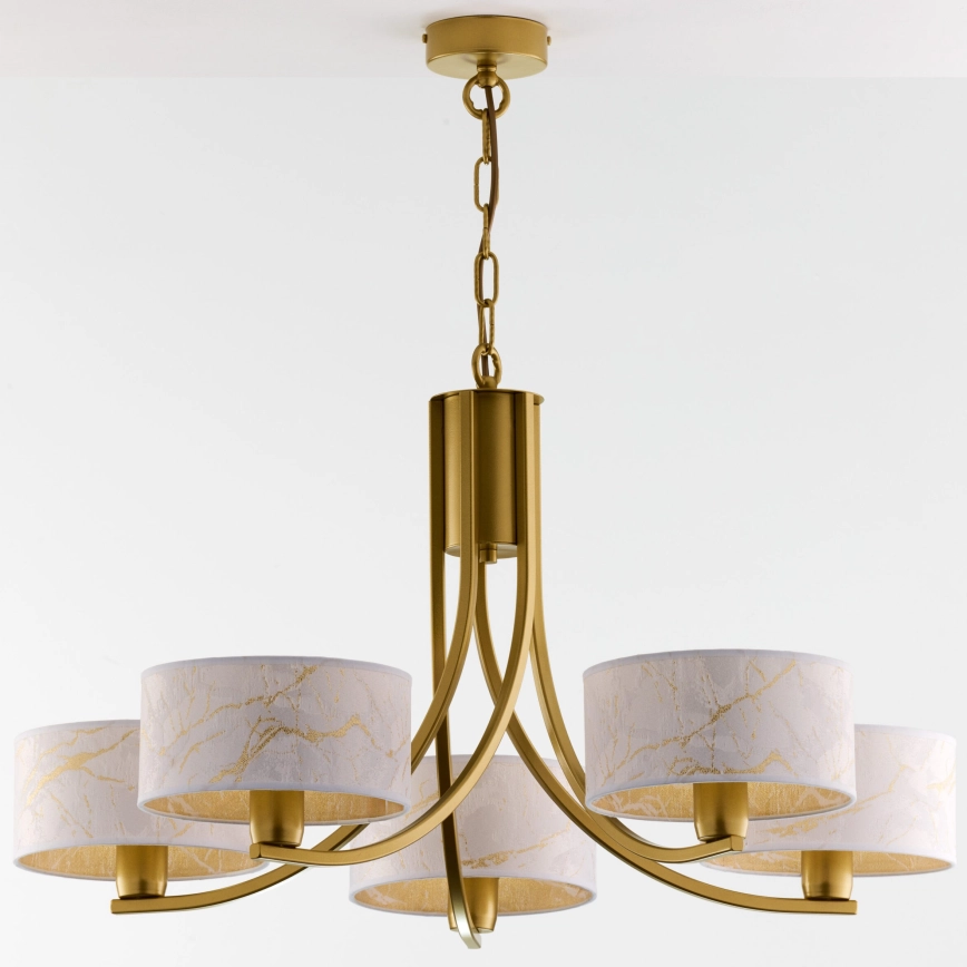 Jupiter 2097 - Luster na reťazi ARTHUR 5xE27/15W/230V biela/zlatá/mramorový dekor
