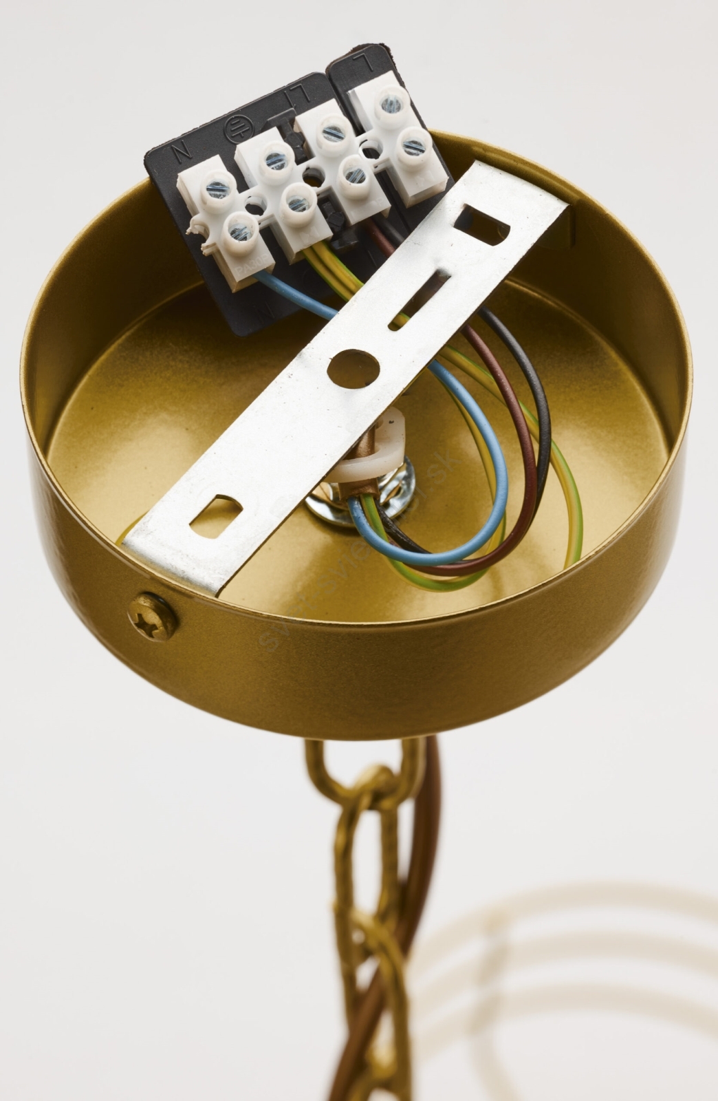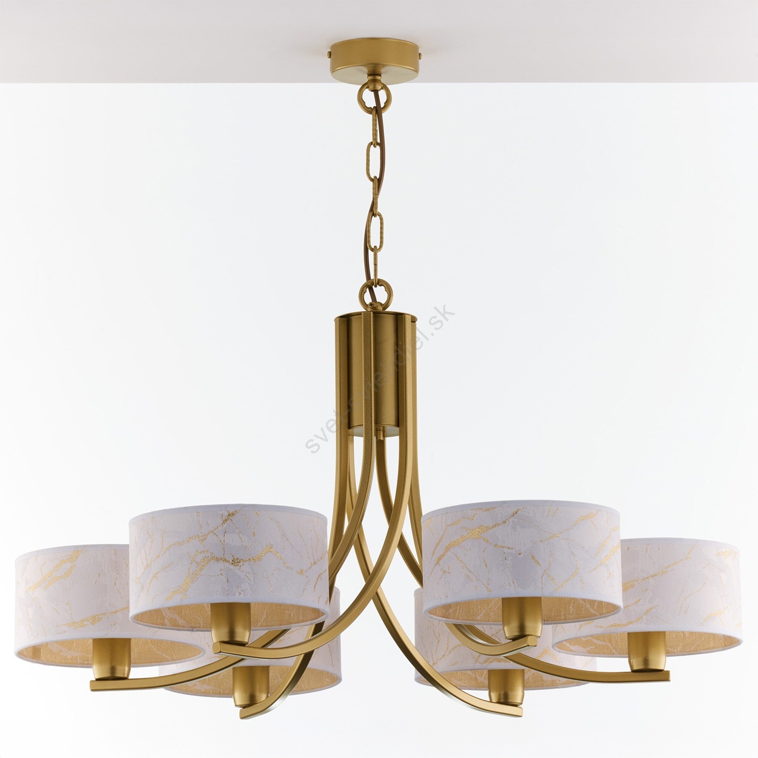 Jupiter 2098 - Luster na reťazi ARTHUR 6xE27/15W/230V biela/zlatá/mramorový dekor charakterizuje pekný dizajn a funkčné prevedenie.  Do svietidla je určená žiarovka s päticou E27. Tu si môžete kúpiť ďalšie žiarovky za výhodnú cenu. Získate tak zaujímavý doplnok do svojho domova.