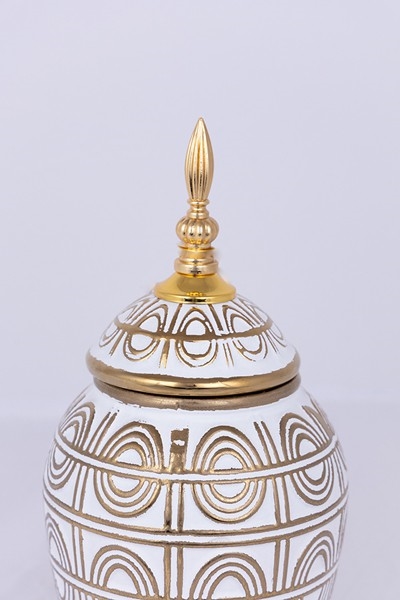• Zlatá farba zvýrazňuje obrysy vzoru a viečko, čím váze dodáva luxusný a sofistikovaný vzhľad.