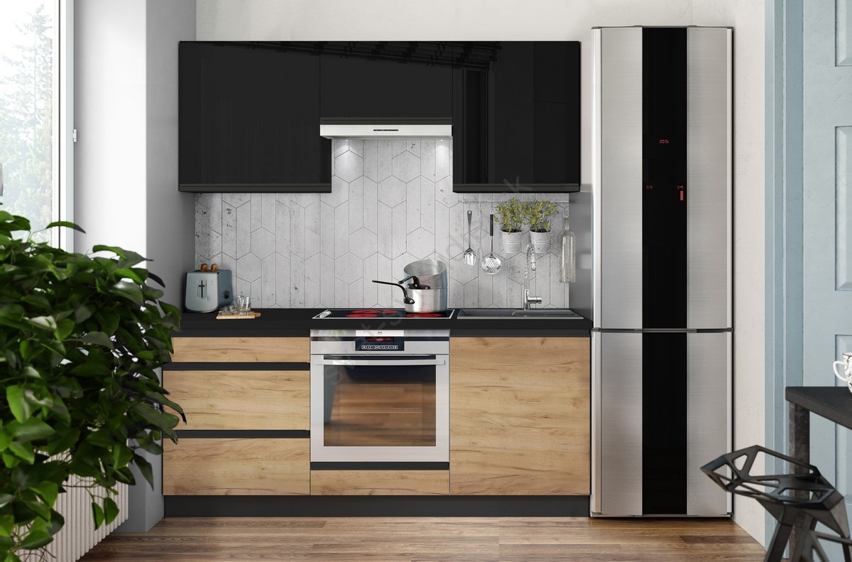 Kuchynská linka MARINA 180 cm dub craft/lesklá čierna