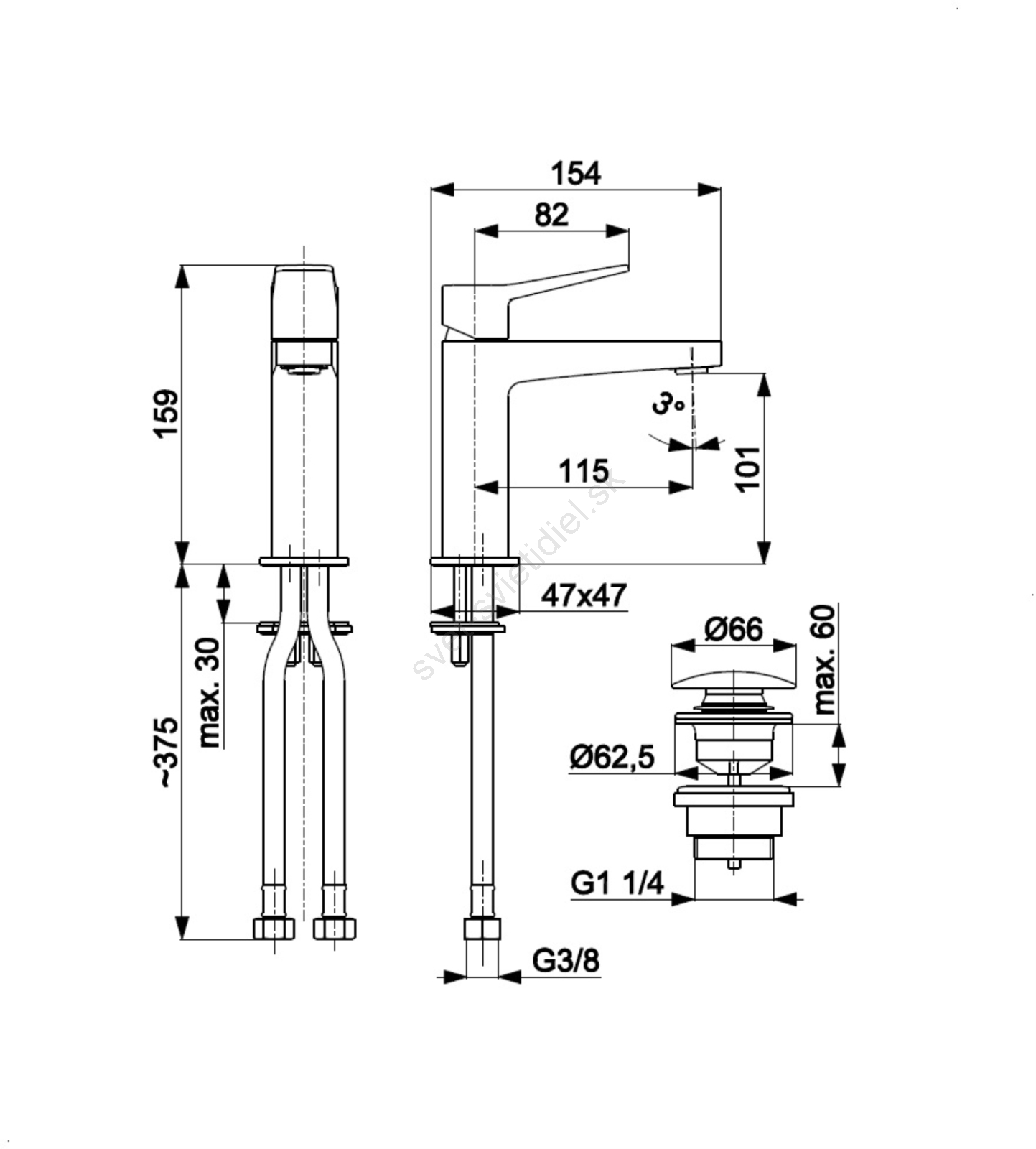 • Balenie obsahuje: malá klik-klak výpusť, M10x1/G3/8" flexibilné hadice (L=450 mm, 2 ks).