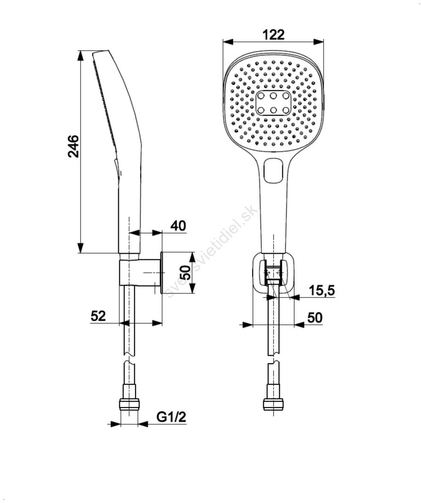 • Balenie obsahuje: nastaviteľné nástenné madlo, montážna sada, ručná sprcha, PVC hadica (L=1500 mm).