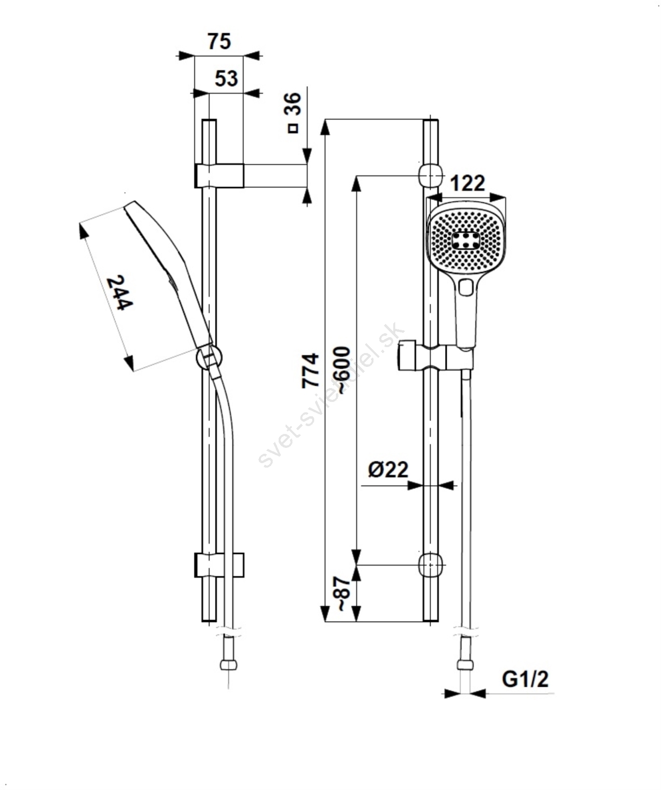 • Balenie obsahuje: sprchová tyč, nástenné držiaky - 2 ks (vrátane 1 držiaka s možnosťou prispôsobenia polohy k existujúcim otvorom), montážna sada (2 skrutky s hmoždinkami), ručná sprcha s madlom, PVC hadica (L=1500 mm).