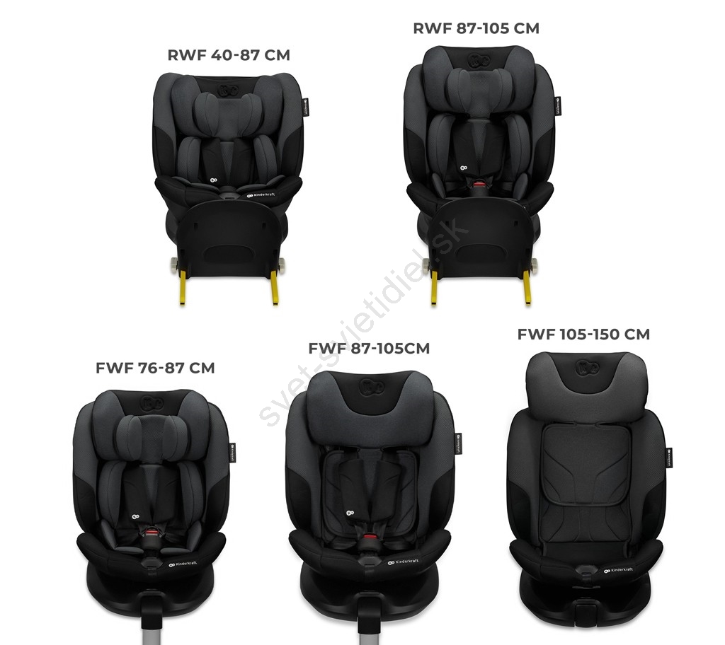 • Cestovanie proti smeru jazdy (RWF) je možné až do 4 rokov, čo výrazne zvyšuje bezpečnosť pri čelnom náraze.