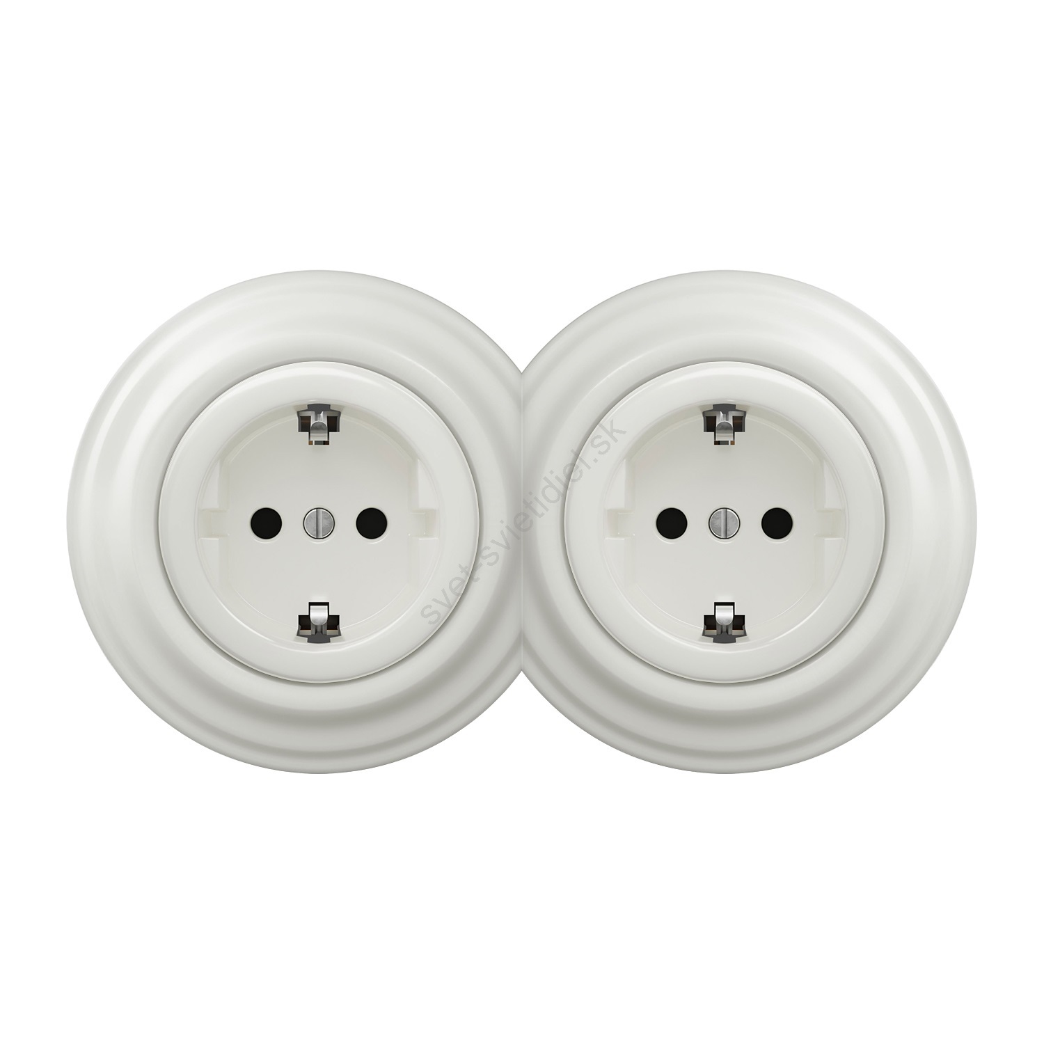 Kliklap - Dvojitá retro zásuvka do domácnosti s rámikom SCHUKO 230V/16A biela