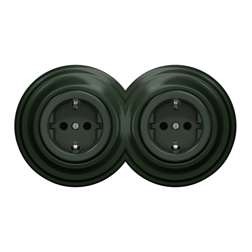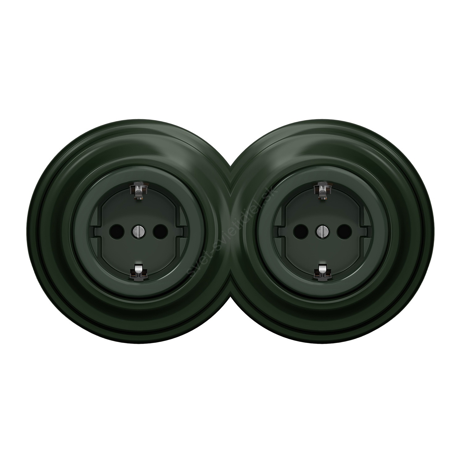 Kliklap - Dvojitá retro zásuvka do domu s rámčekom SCHUKO 230V zelená
