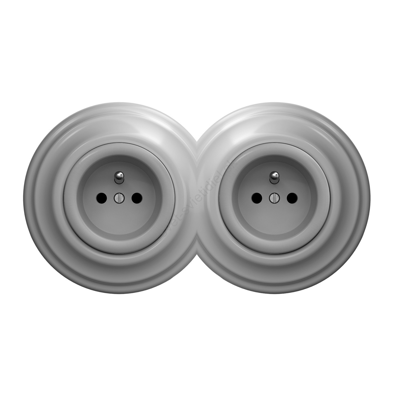 Kliklap - Dvojitá retro domová zásuvka s rámčekom 230 V, sivá