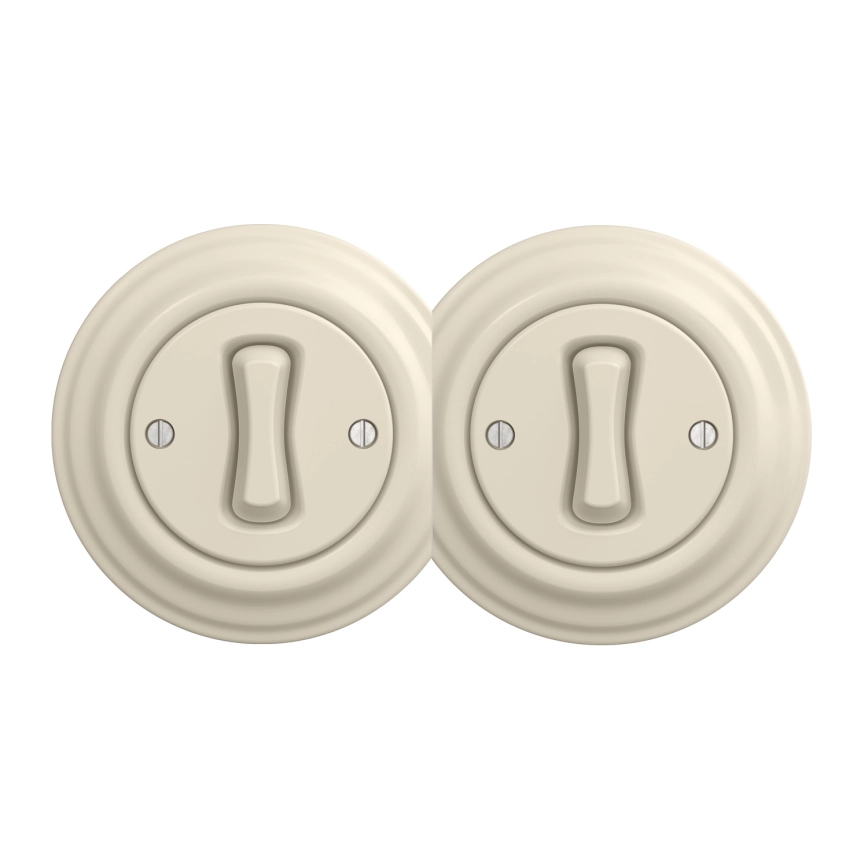 Kliklap - Dvojitý retro jednopólový vypínač s rámčekom č. 1 béžový