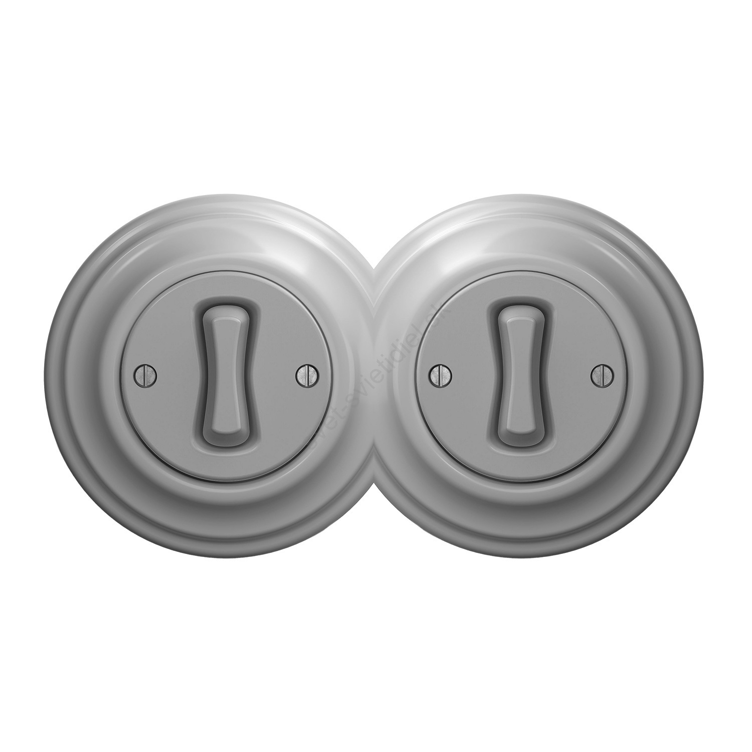 Kliklap - Dvojitý retro jednopólový vypínač s rámikom č. 1, sivý