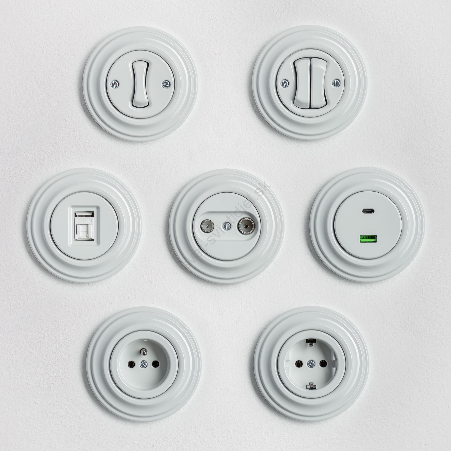 Kliklap - Retro dátová zásuvka s keramickým rámčekom, biela