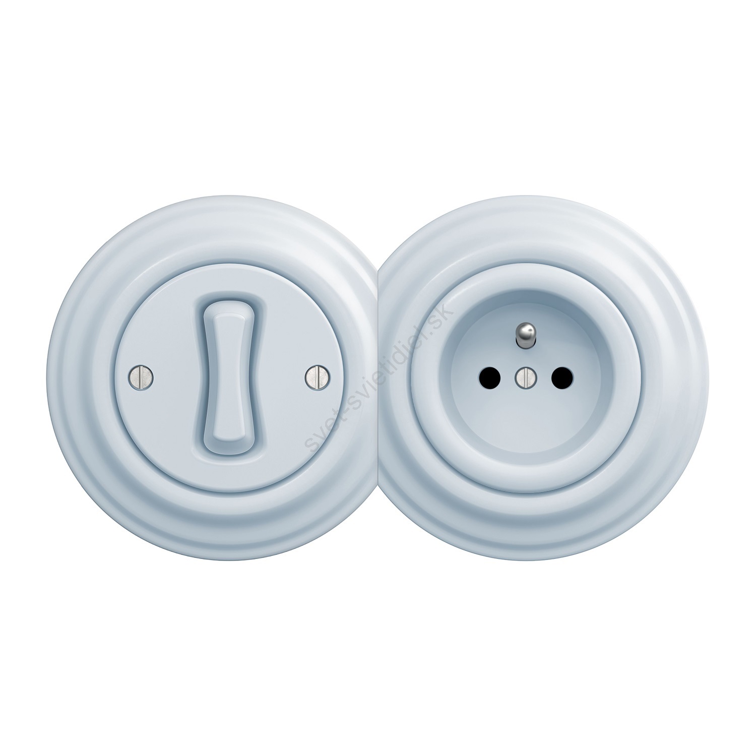 Kliklap - Retro jednopólový vypínač č. 1 a zásuvka 230 V s rámčekom modrá