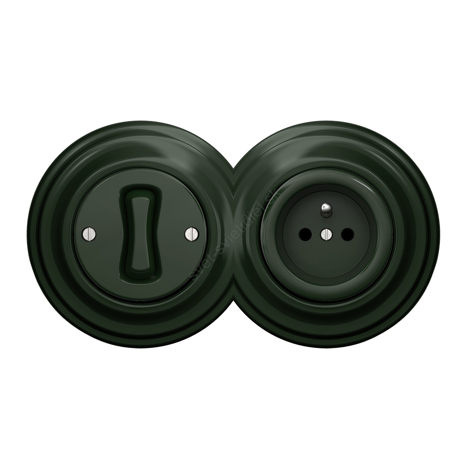 Kliklap - Retro jednopolový vypínač č. 1 a zásuvka 230V s rámčekom zelená