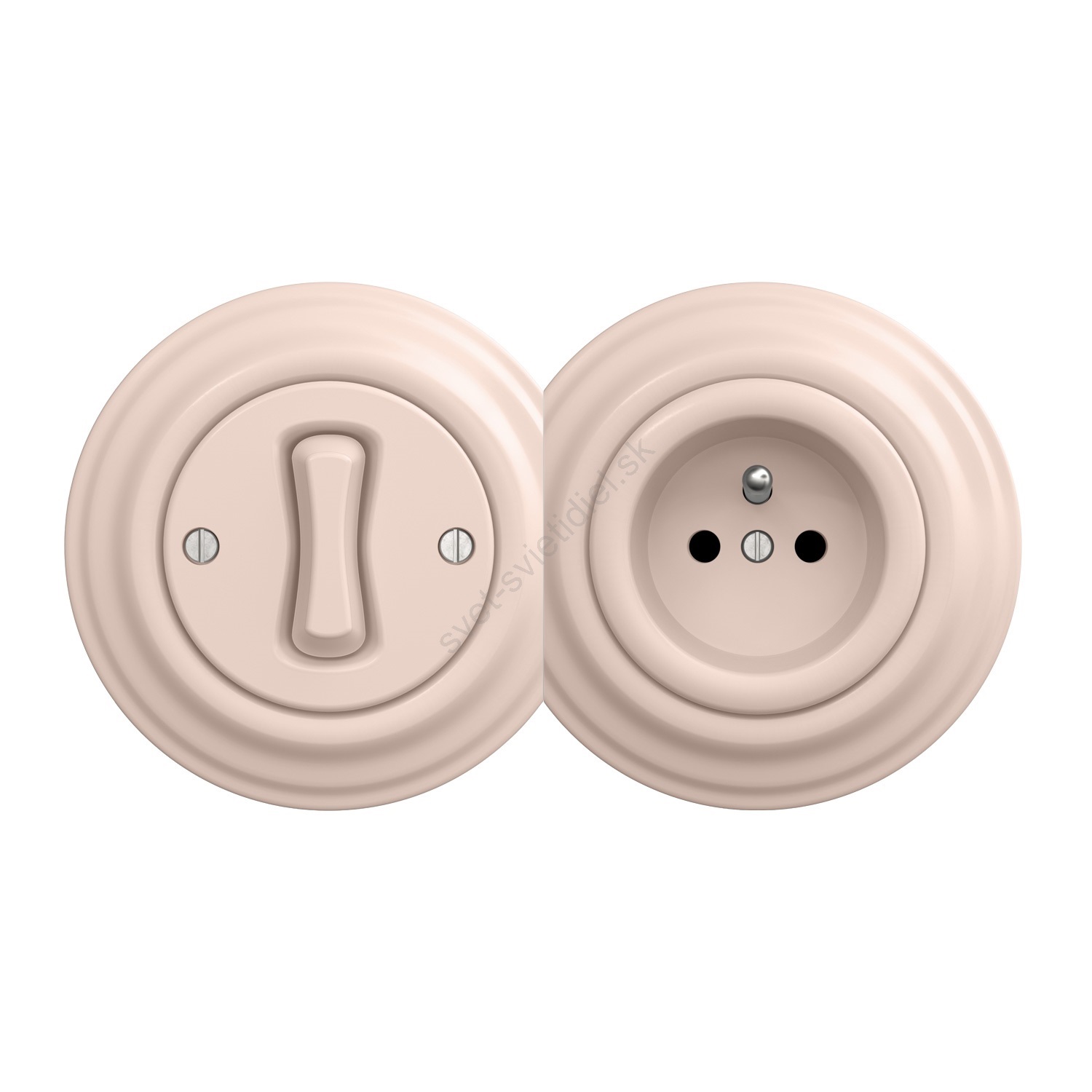 Kliklap - Retro jednopólový vypínač č. 1 a zásuvka 230V s rámčekom staroružová