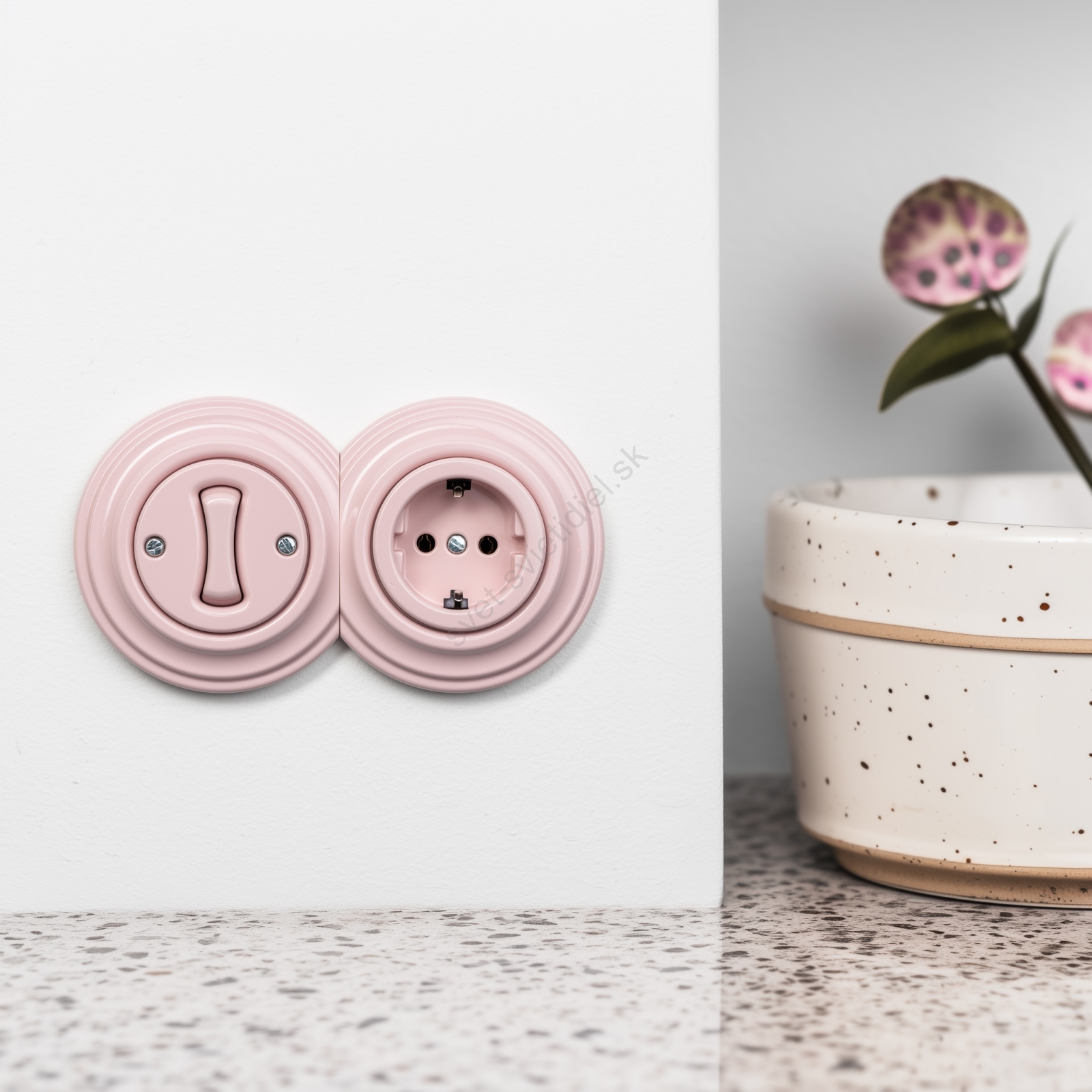 Kliklap - Retro jednopólový vypínač č. 1 a zásuvka SCHUKO 230 V s rámčekom v staroružovej