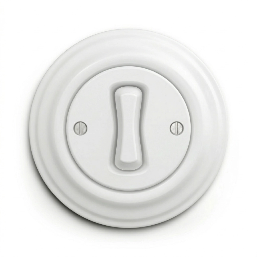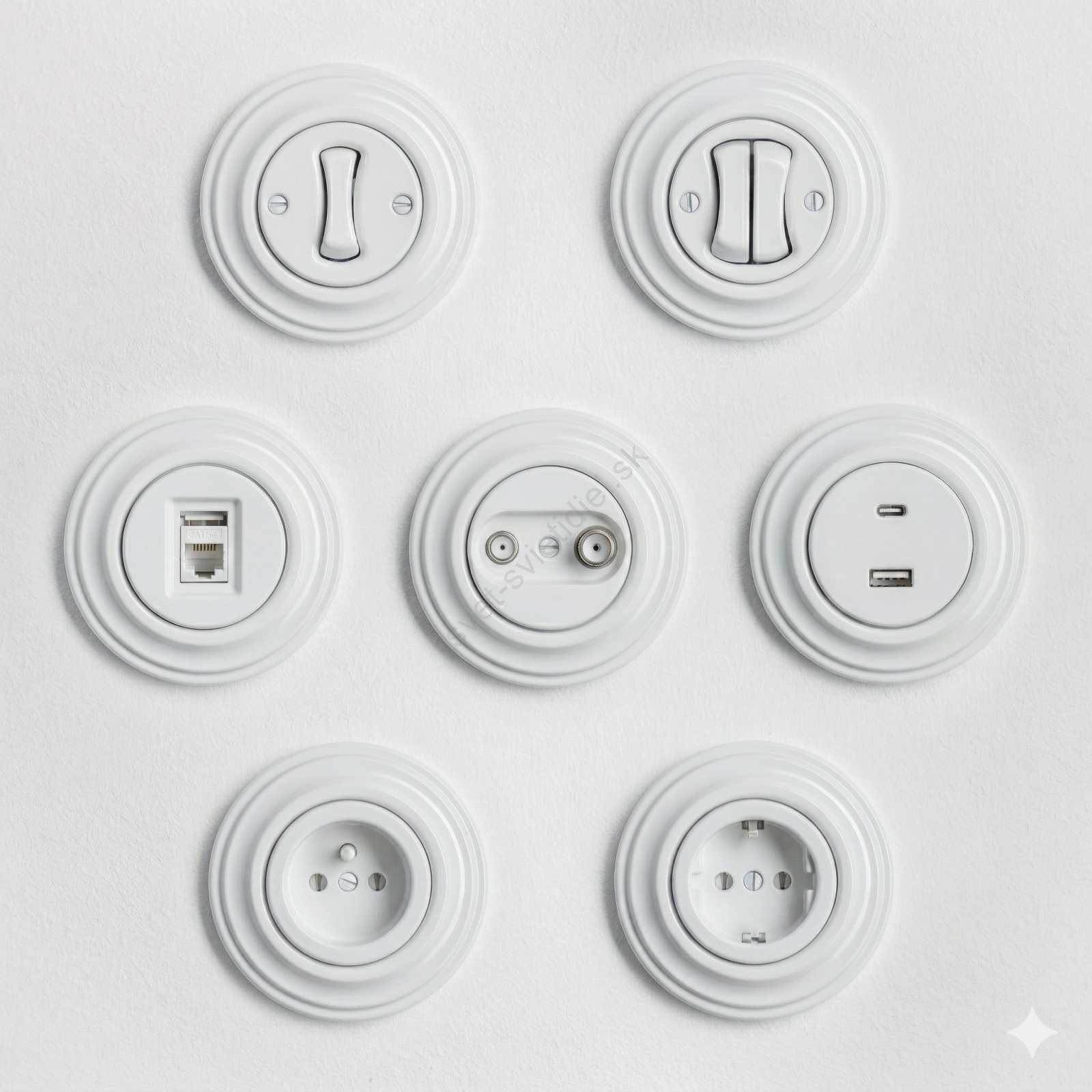 • Kliklap - Retro tlačidlo s rámikom, keramické, biele