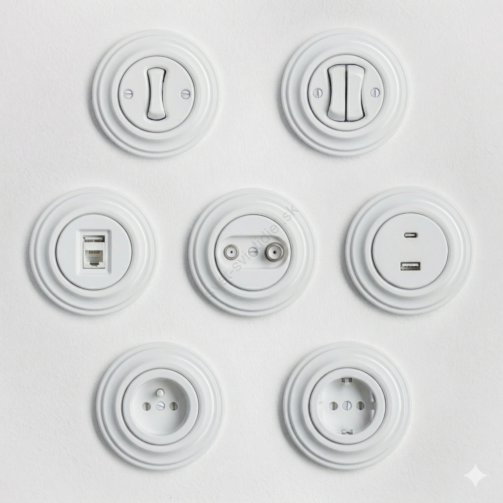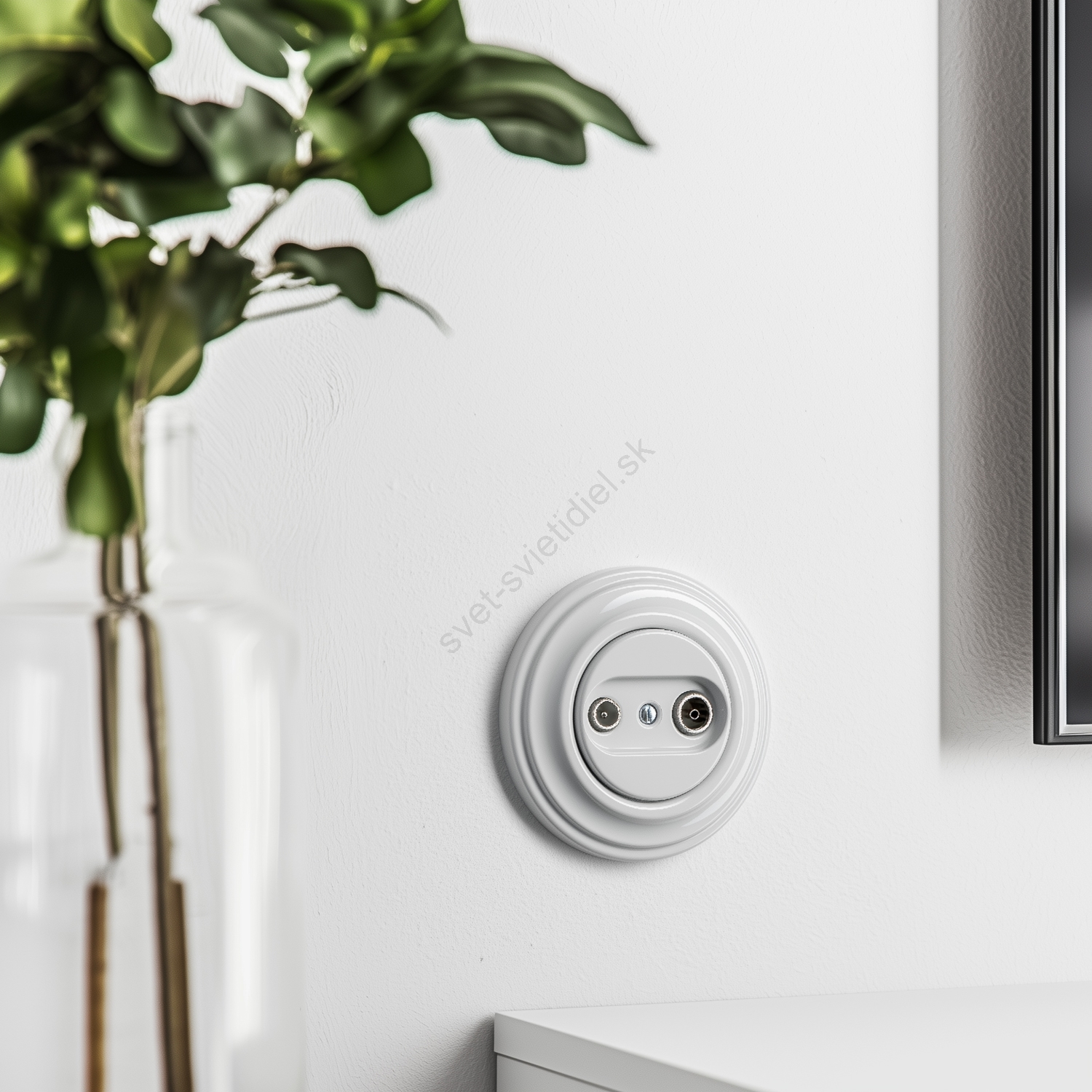 • Kliklap - Retro účastnícka zásuvka TV+R (koncová) s rámikom keramická biela