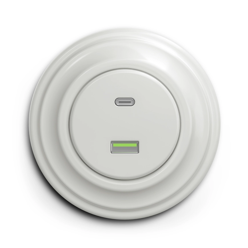 Kliklap - Retro USB zásuvka A+C s rámčekom biela